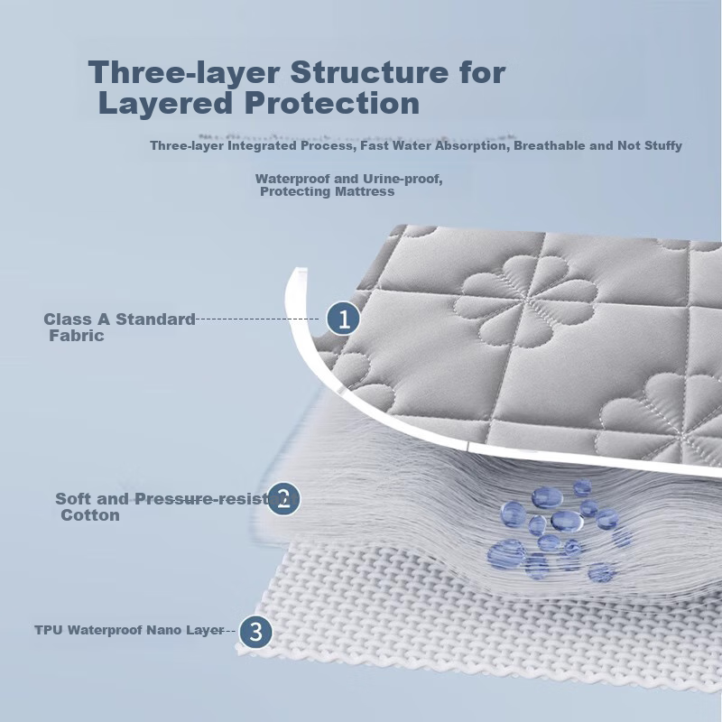 MUJI Class A Waterproof Cotton Clip Mattress Cover Single Waterproof Urine Separation Full Wrap Bed Sheet Cover 1.5*2m Mattress Protection Cover Grey