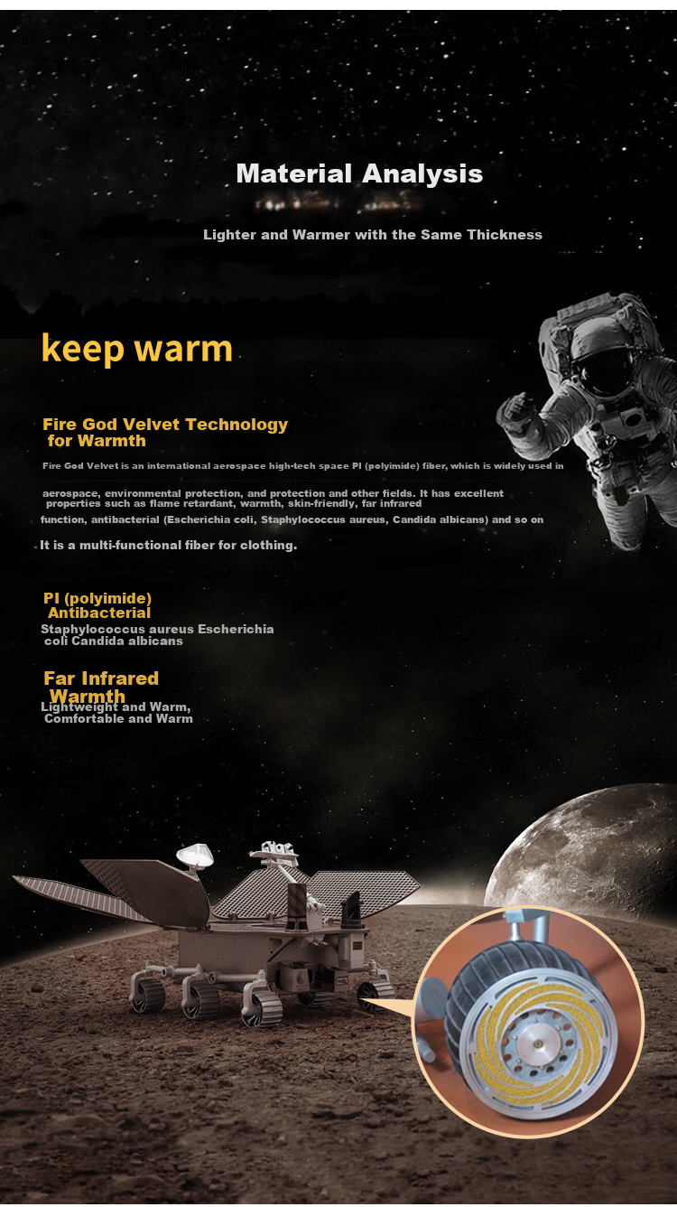 Material: PI fiber with flame retardant, warmth-keeping, skin-friendly, far infrared, antibacterial properties