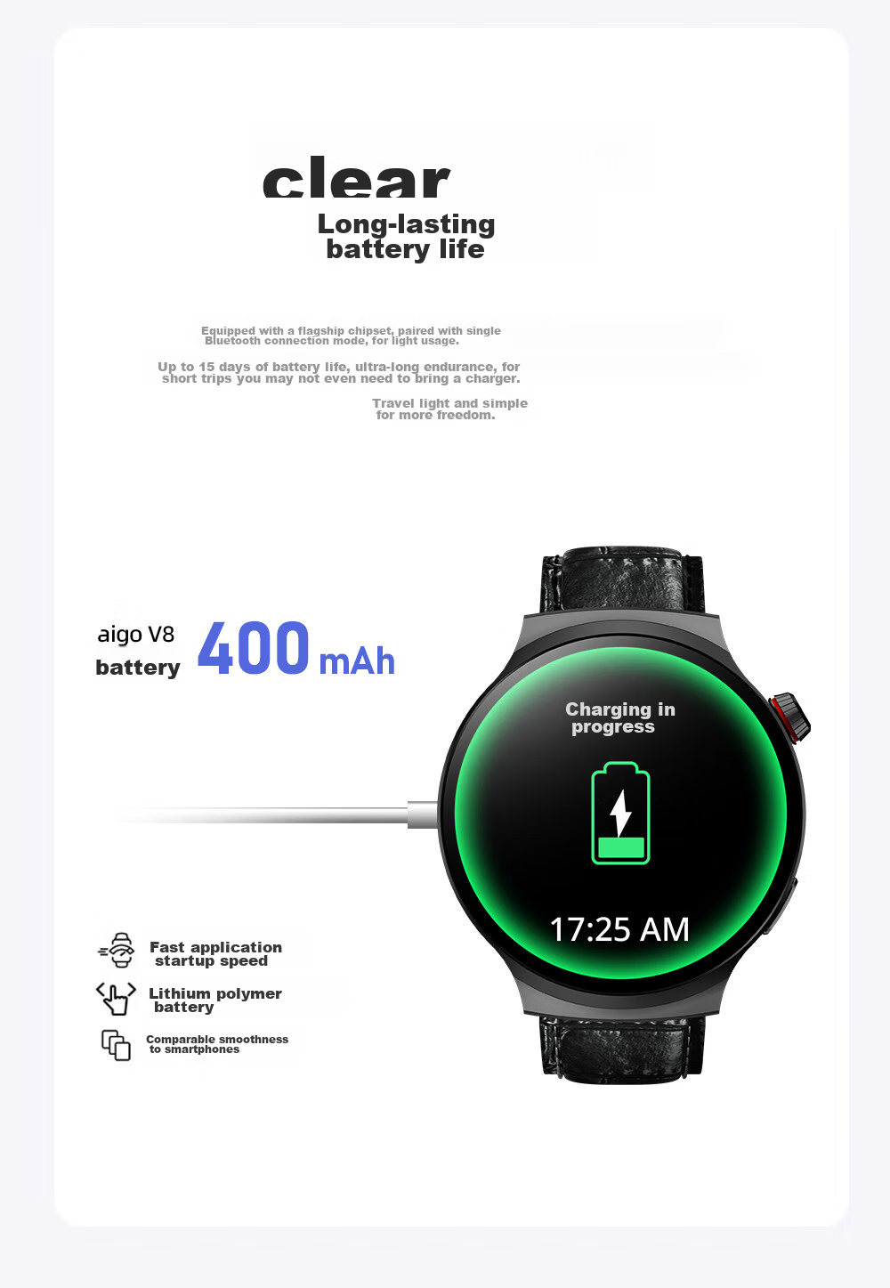 aigo, a well-established brand with a history dating back to 1993, offers a range of innovative and reliable products. The V8 Smart Watch is designed to provide a seamless and stylish experience, combining advanced technology with a focus on health and fitness. With its versatile features and durable construction, the V8 Smart Watch is a perfect companion for modern lifestyles.