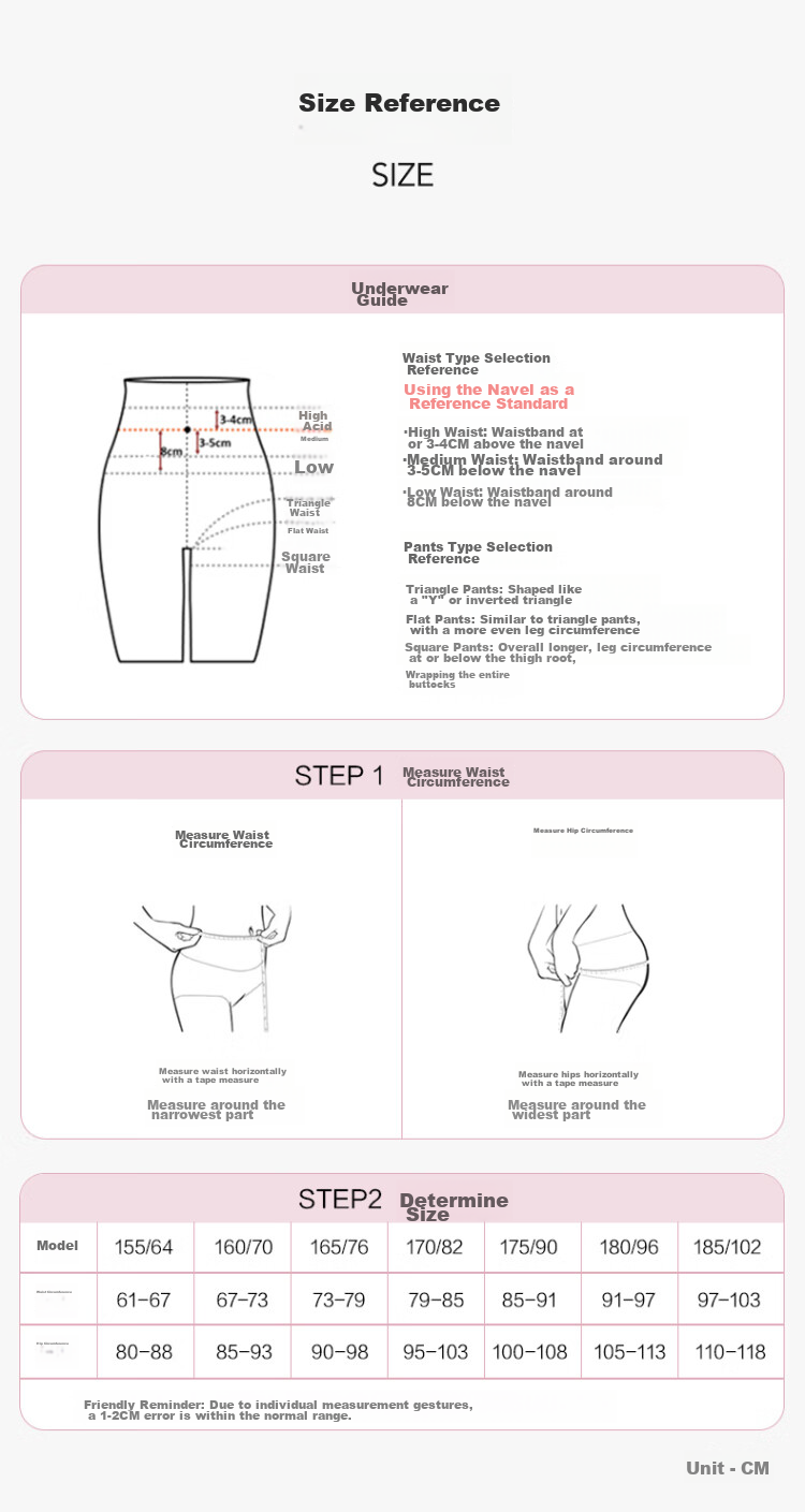 **Size Guide:** Waist type selection - high waist, mid waist, low waist; Pant type selection - triangle, flat angle, square angle