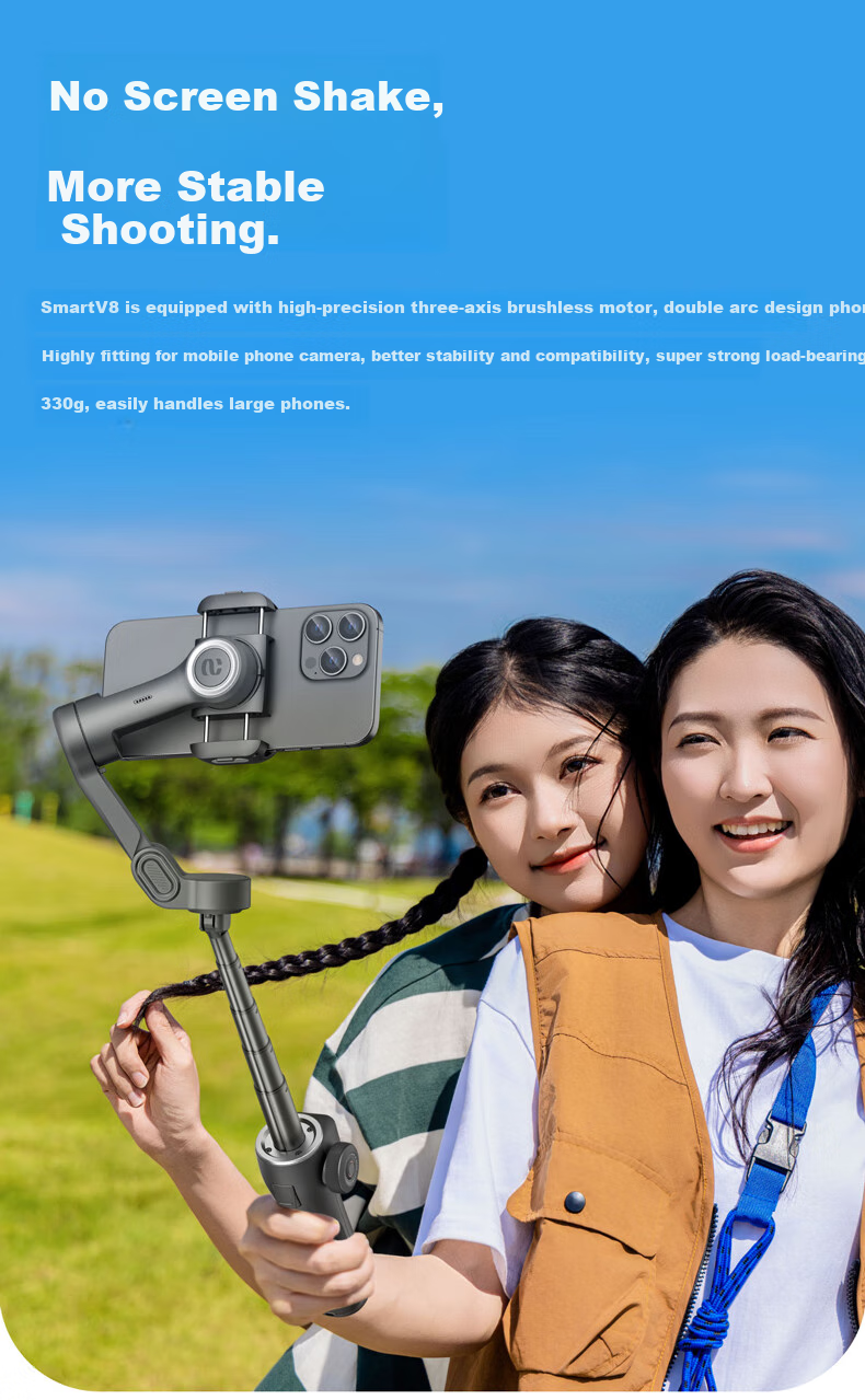 - Stable shooting with SmartV8 high-precision three-axis brushless motor