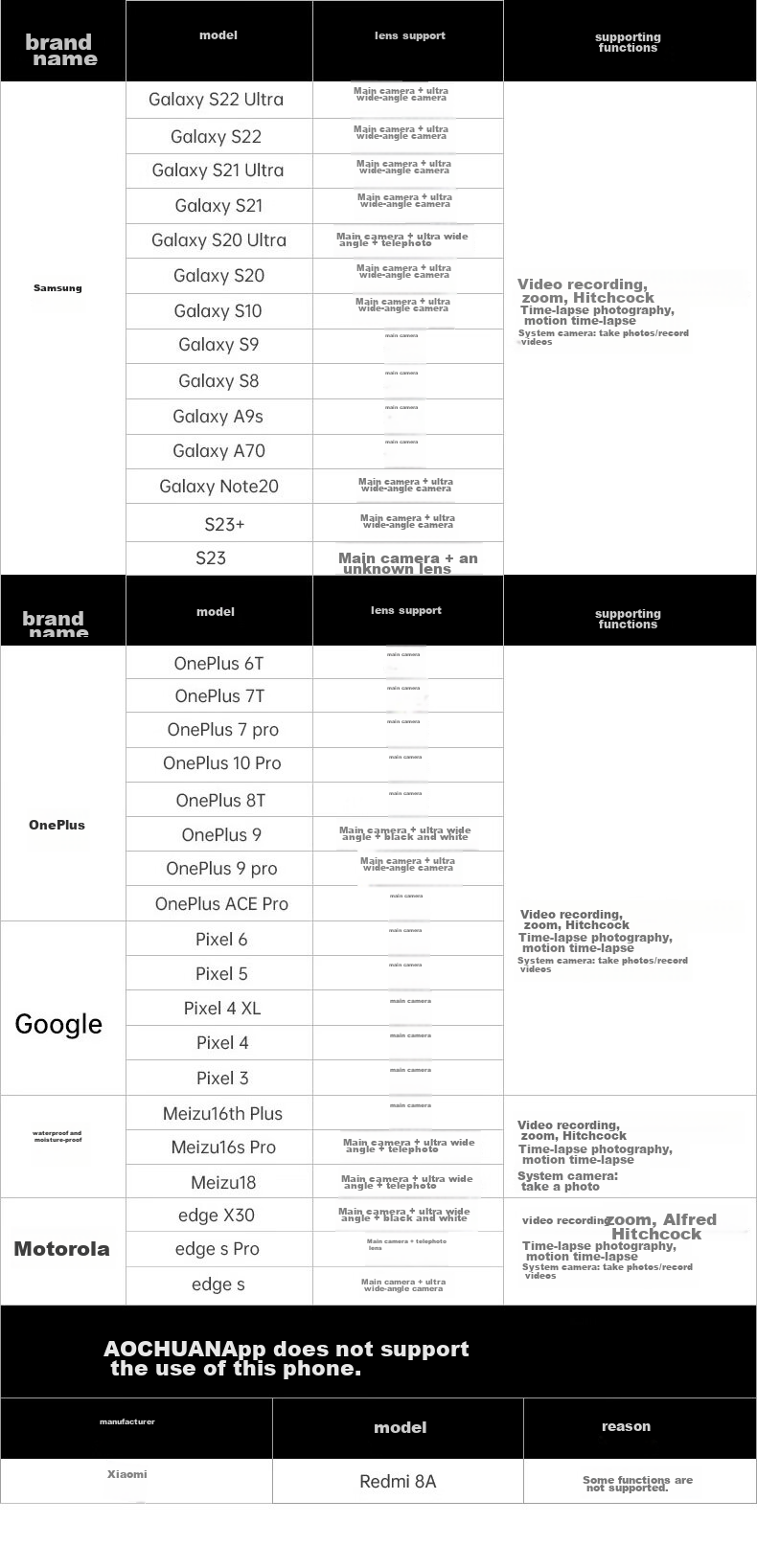 **Compatibility:** Supports various smartphone models including Galaxy S series, OnePlus, Pixel, Meizu, and Motorola