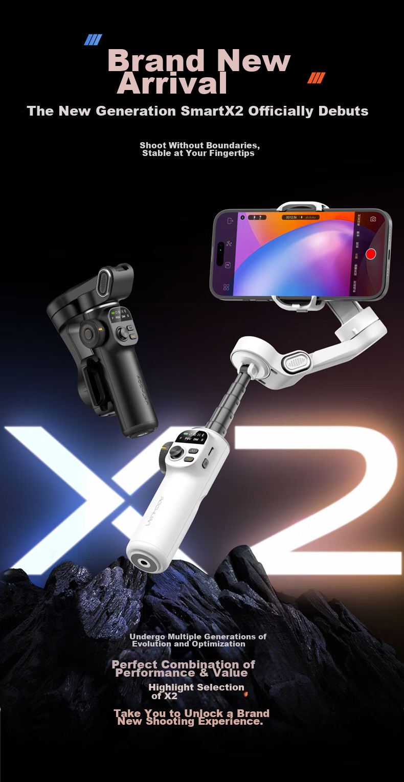 **New Release:** SmartX2 with upgraded features such as three-axis stabilization, extended rod, and intelligent software algorithms