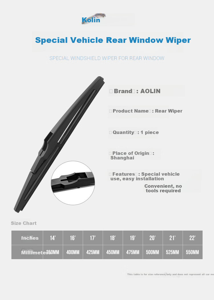 AOLIN rear windshield wipers are constructed with high-quality materials and feature a special hidden spring design. The stainless steel hidden design ensures even pressure distribution, preventing scratches. The aerodynamic design reduces wind resistance during high-speed driving. The wipers use high-quality rubber strips for a clean and precise wipe, tailored for specific car models with original interfaces.