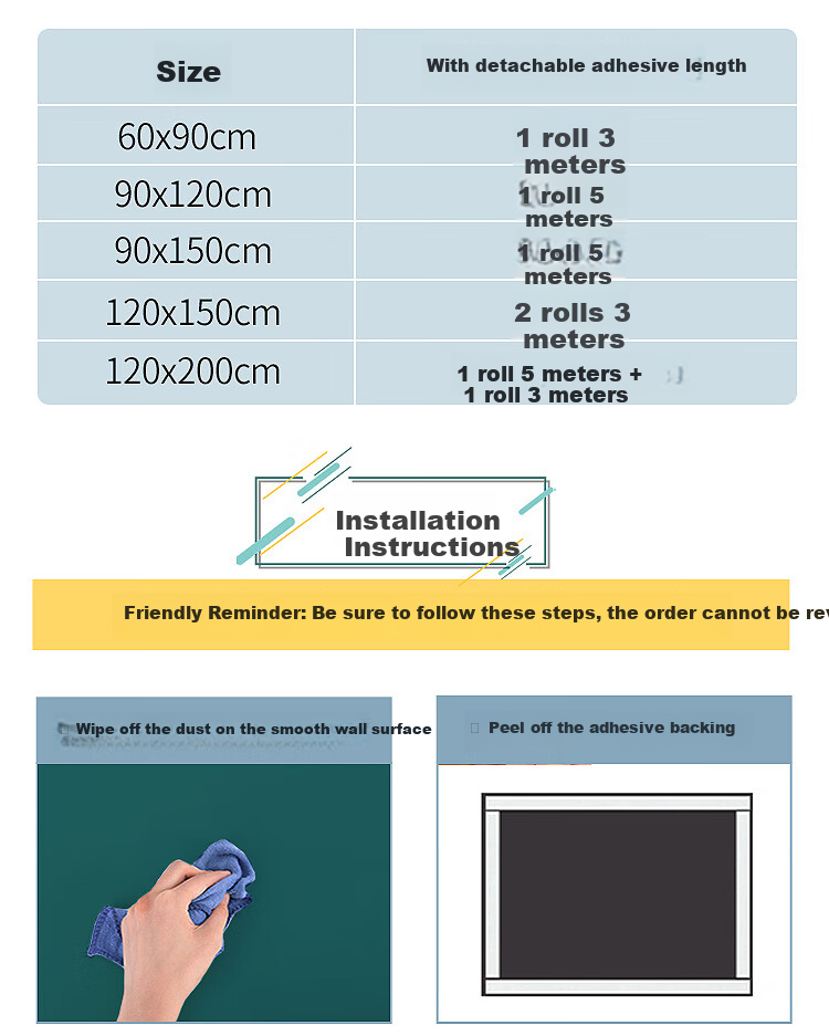 - 120x200cm: 1 roll of 5 meters + 1 roll of 3 meters