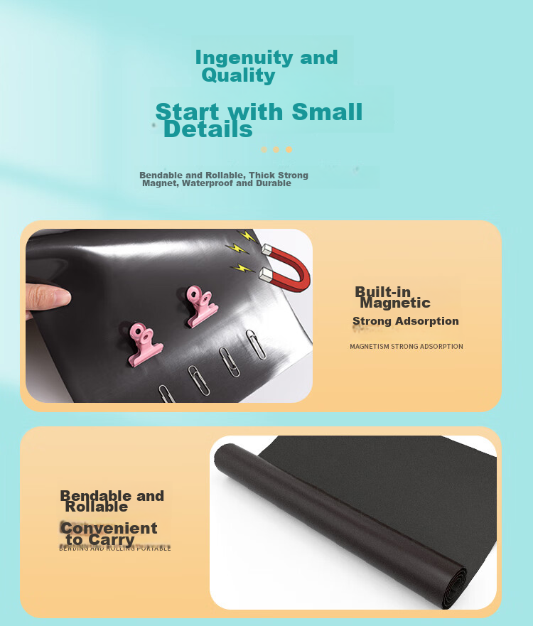 **Material:** Bendable and rollable, thick and durable, with strong magnetic adsorption.