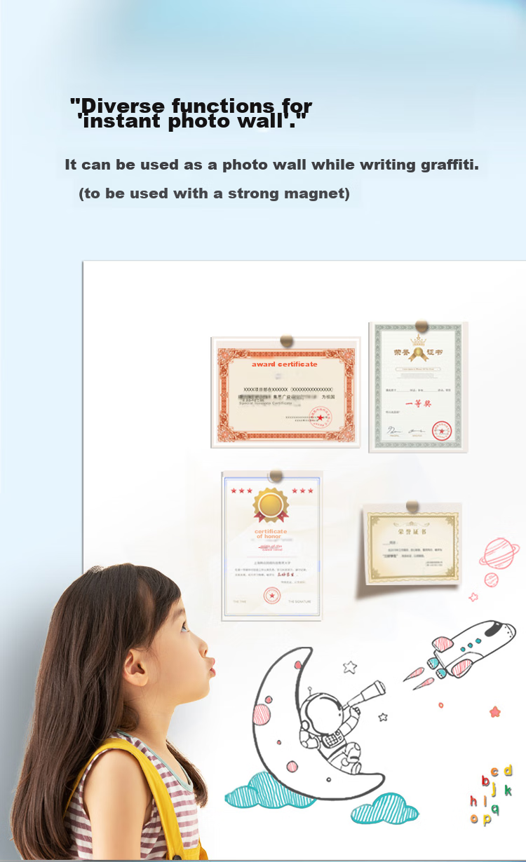 **Versatility:** Can be used as a Photo Wall while writing and drawing (requires strong magnets for use)