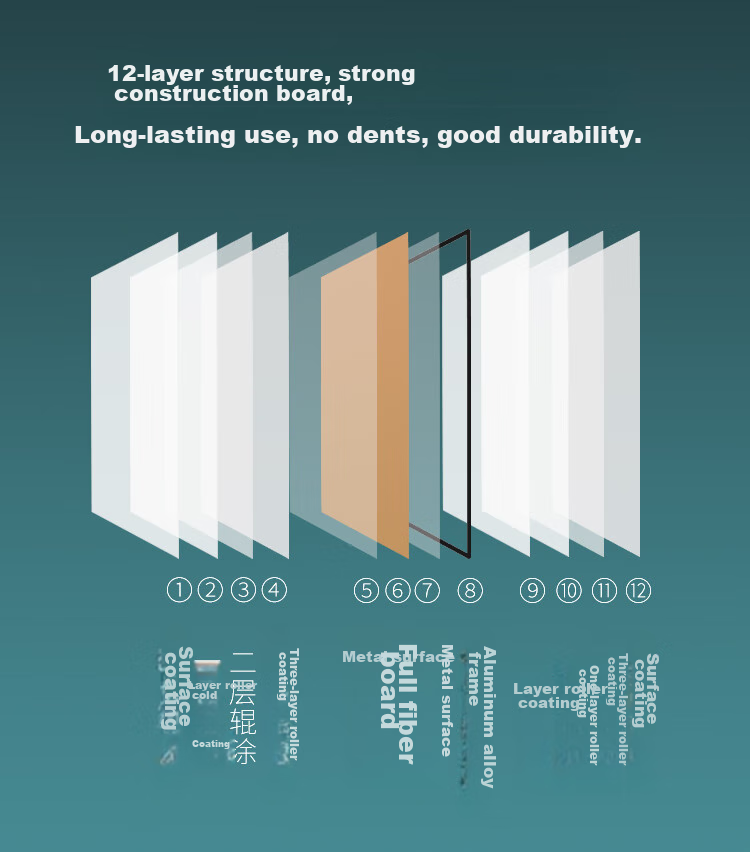 **Surface:** Three-layer roller coating, metal surface with aluminum alloy frame, easy to write and erase