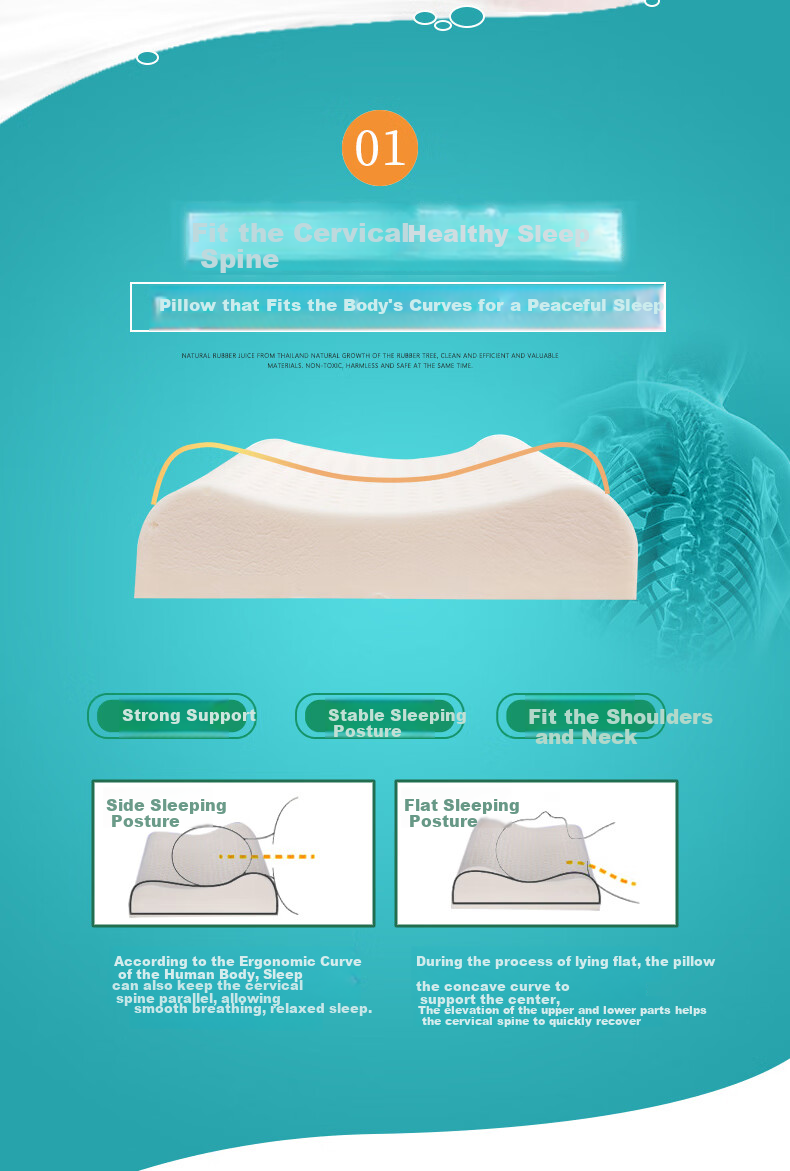 **Description:** Children's latex pillow designed to accompany healthy growth and meet various sleep needs of babies. Designed to meet the needs of baby's sleep, providing comfort and support for different sleeping positions.
