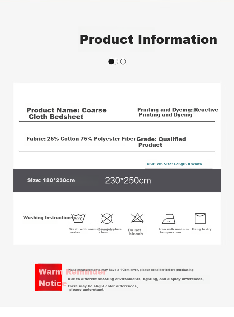 **Description:** A bedsheet that is easy to manage and non-slip, one sheet is as good as two, made of thickened coarse cloth for a comfortable and burden-free sleep experience. Embrace the bed, remove the tags, and let go of all worries. Relax and enjoy a peaceful eight-hour sleep, THEWAY LIFE. Made of cotton coarse cloth, high thread count and density, washable, comfortable on the skin, breathable, suitable for machine wash, cool and airy, reactive printing and dyeing, suitable for all ages, does not stick to the body when sweating, promotes healthy sleep, thick and smooth, BREATHABLE, REACTIVE, suitable for all seasons.