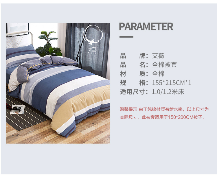 AVIVI Cotton Duvet Cover Single Piece Dormitory Single Bed Sheet Cover Pure Cotton 150x200 Quilt Cover Single Piece Nordic Era