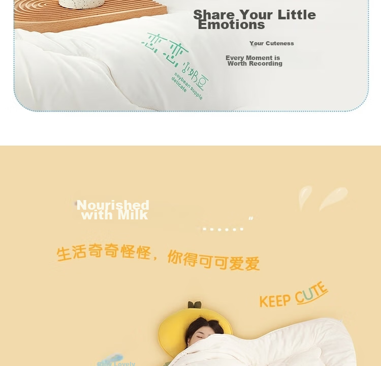 **Description:** Embrace the "Milkquilt" and enjoy a cozy and amiable dairy lifestyle. Share your emotions and cuteness with this quilt that is worth every moment. Infused with milk proteins and soy proteins, this quilt offers a scientific blend of 4:1 polyester and adhesive filling, providing antibacterial protection at 7A level. The quilt features moisture-wicking and heat-retaining properties to ensure a warm and comfortable sleep. The milk-based fibers are rich in proteins, vitamins, and minerals, offering nourishment for the skin. The quilt is designed to be soft, lightweight, and gentle on the skin, promoting a healthy and restful sleep.