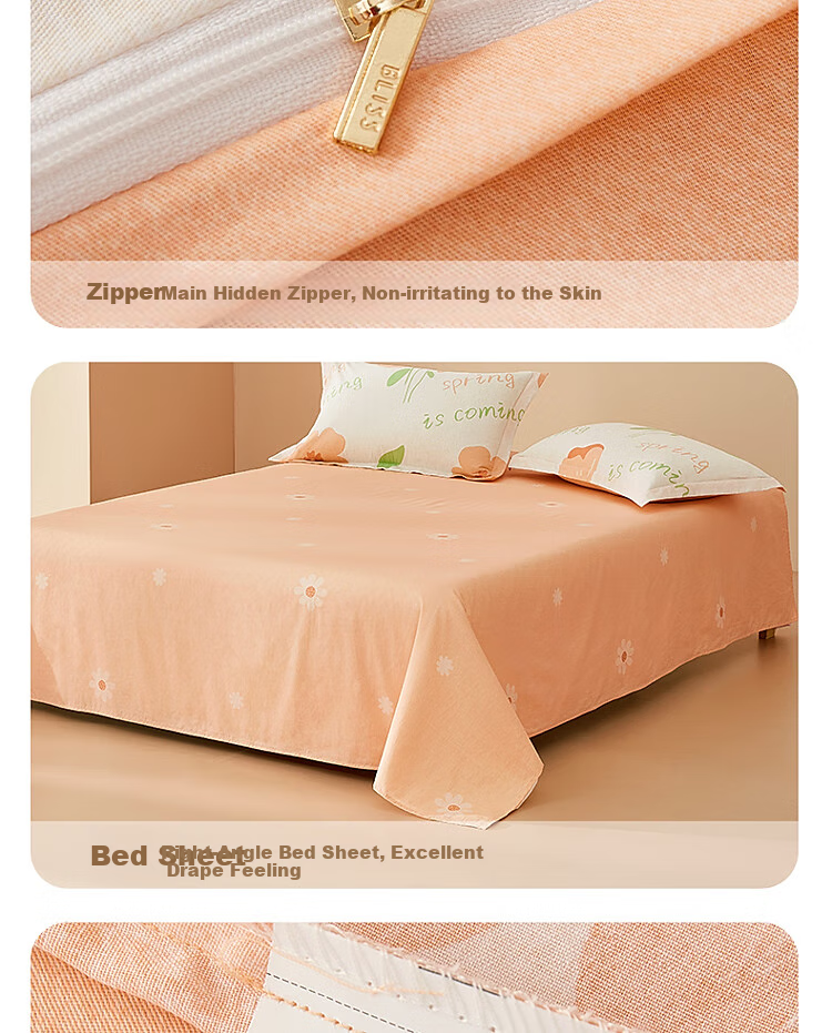 **Pillowcase:** Wide edge design with hidden zipper