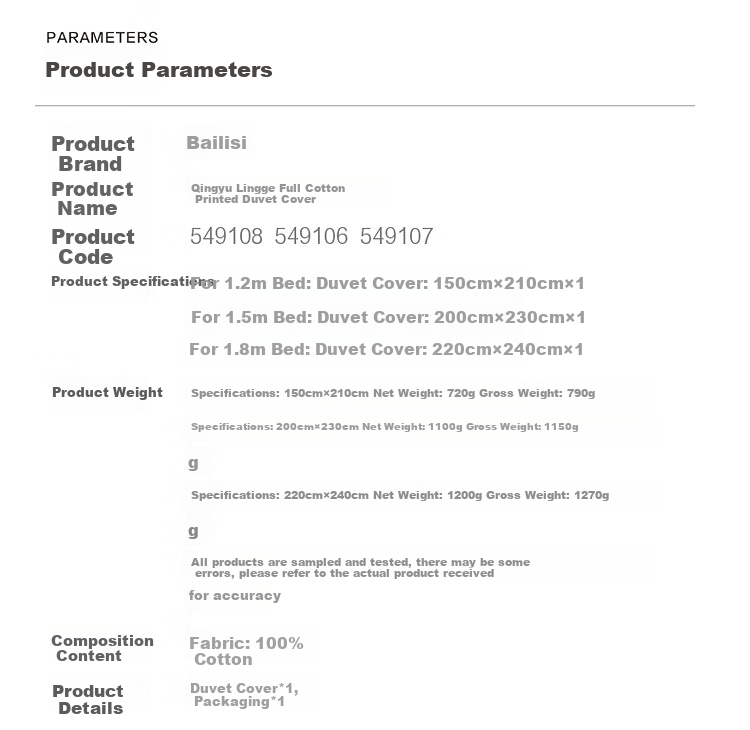 **Product Name:** (Qingyu Lingge Cotton Printed Duvet Cover)