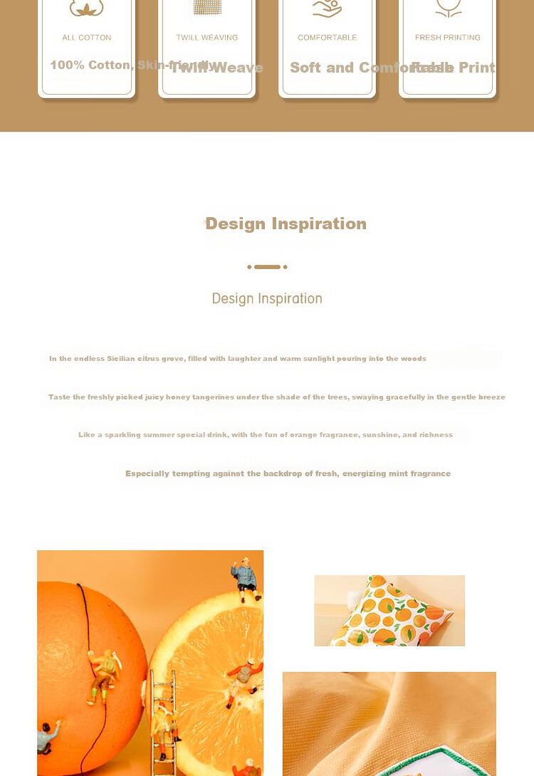 Design Inspiration: Inspired by the endless Sicilian orange groves, where warm sunlight fills the air with laughter and joy. Imagine tasting freshly picked juicy oranges under the shade of trees, swaying gently in the breeze. Like a sparkling summer drink, the fragrance of oranges, sunlight, and freshness, complemented by the invigorating aroma of mint, creates an irresistibly appealing design.
