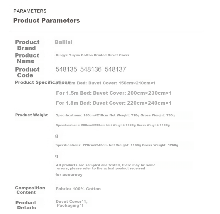 - **For 1.5m Bed:** Duvet Cover: 200cm×230cm×1