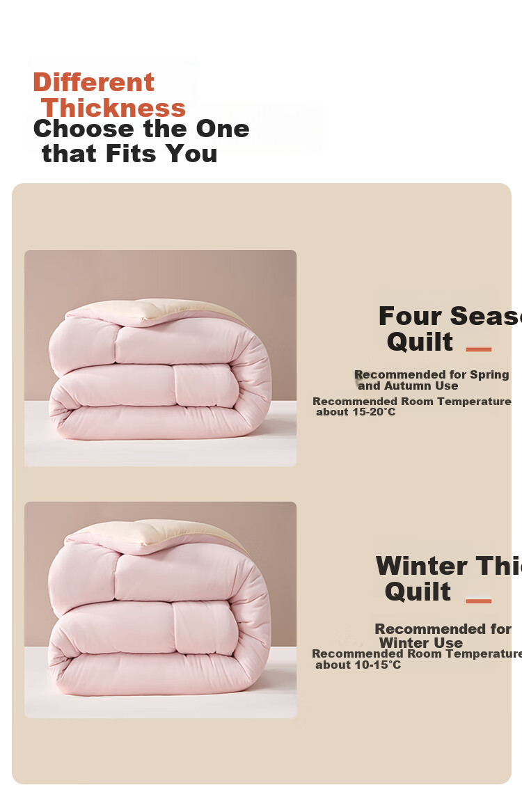 **Thickness Options:** Suitable for all seasons. Thicker comforter recommended for winter.