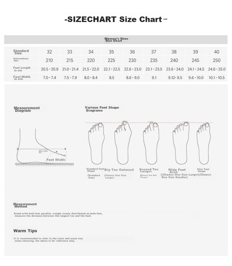 **Size Chart (Women's Shoes):**