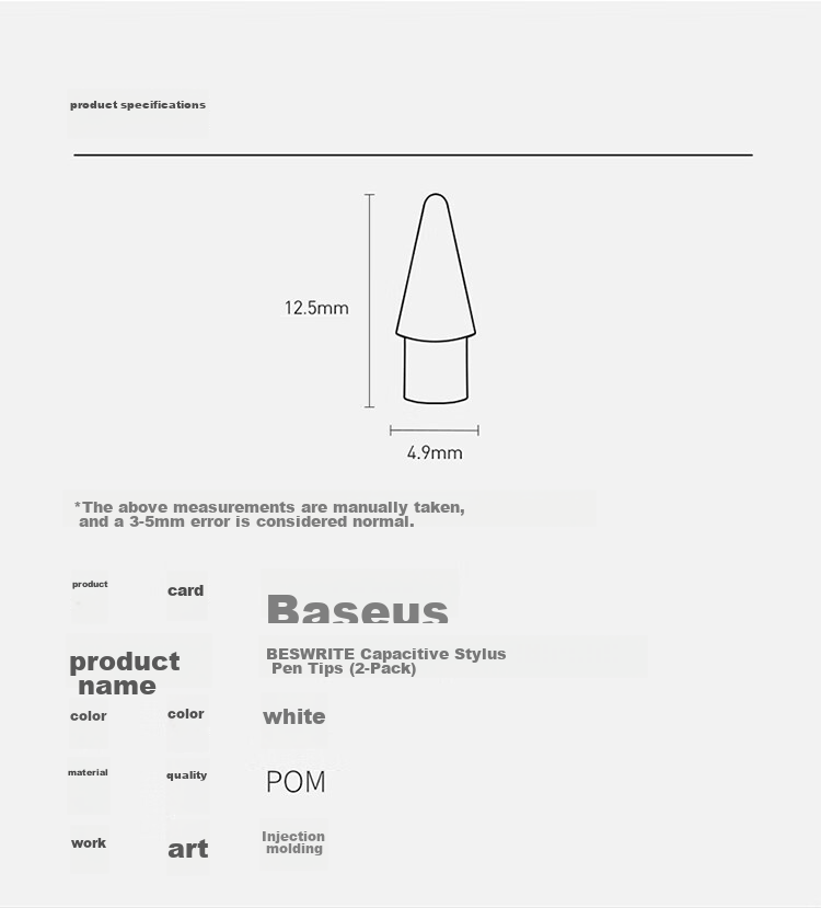 Package Contents: 2 Baseus Smooth Writing Capacitive Stylus Tips