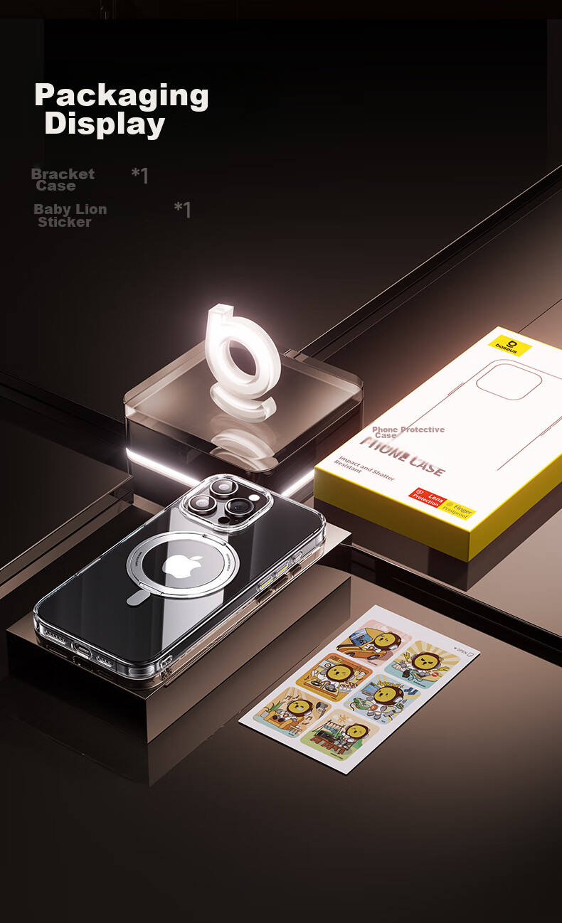 **Package Includes:** 1 Baseus iPhone16 360 Stand Case, 1 Baseus sticker, 1 phone protective case
