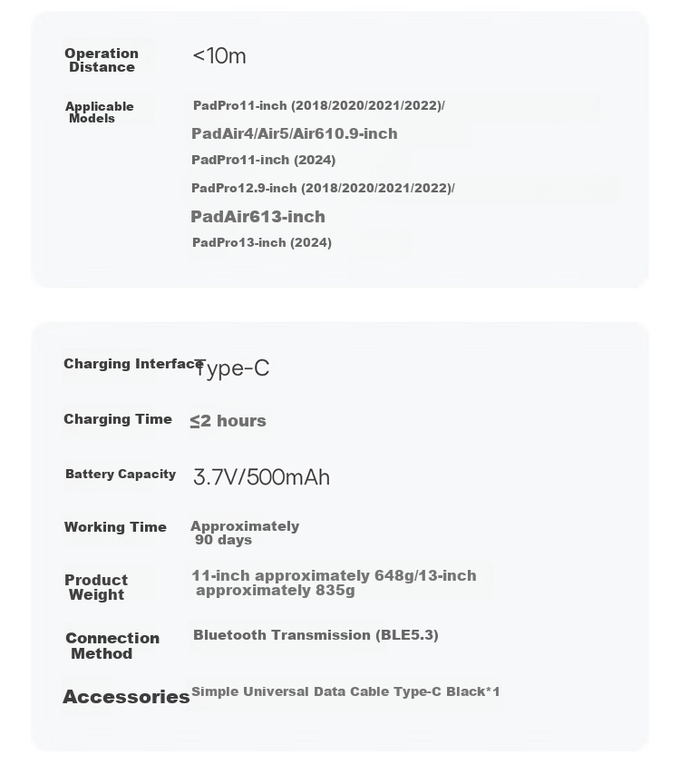 - Suitable for various iPad models including iPad Pro 11-inch, iPad Air 4/Air 5/Air 6 10.9-inch, iPad Pro 12.9-inch, and more