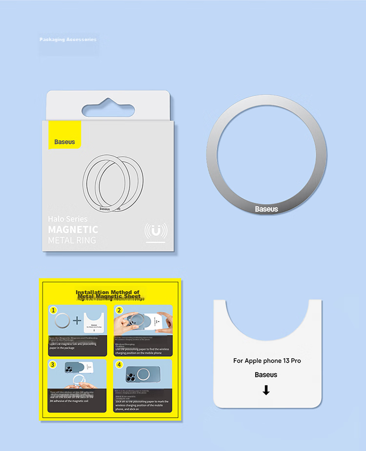 Package Contents: Baseus Halo Series Magnetic Metal Ring (2-pack), Magnetic Metal Ring Installment Steps guide