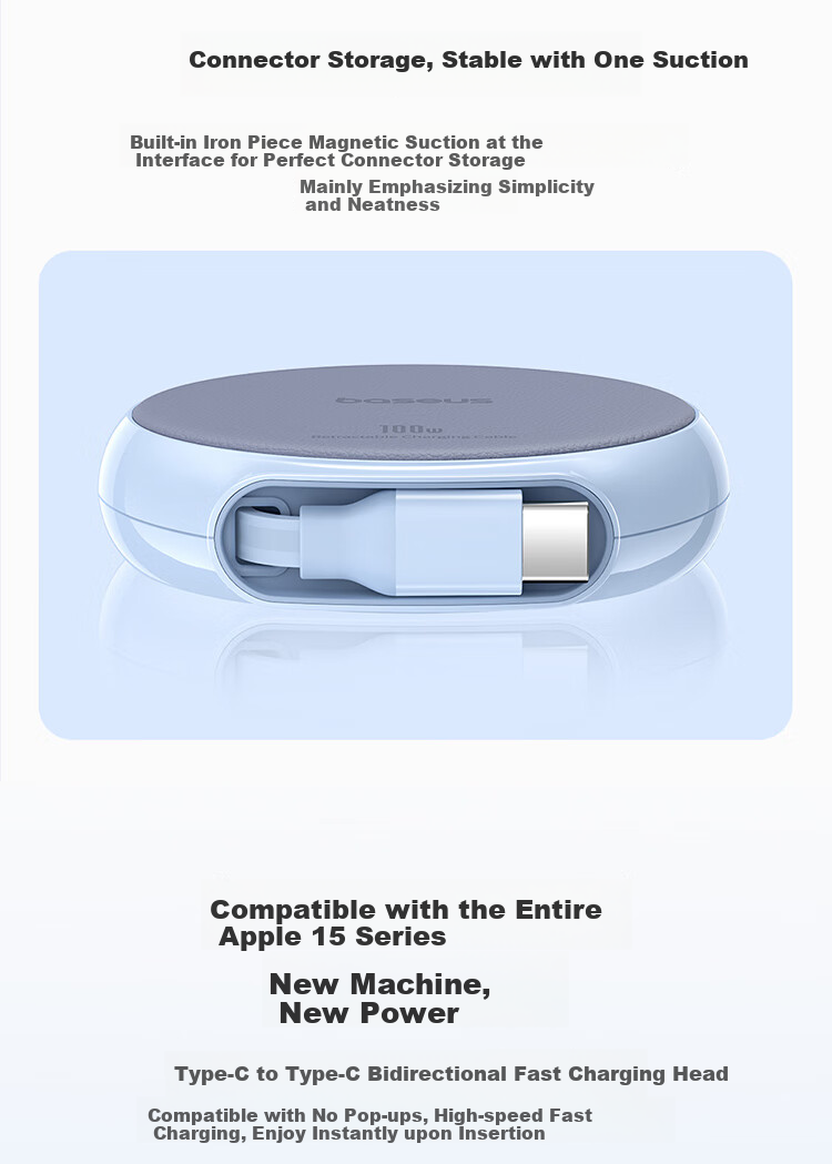 Equipped with Type-C to Type-C bidirectional fast charging head
