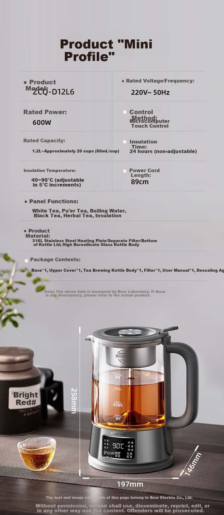 **Functions:** White Tea, Pu'er Tea, Boiling Water, Black Tea, Flower Tea, Warm-keeping