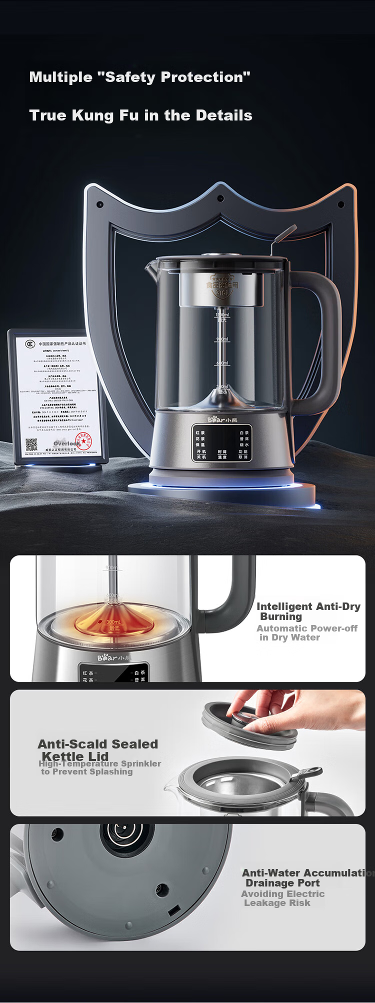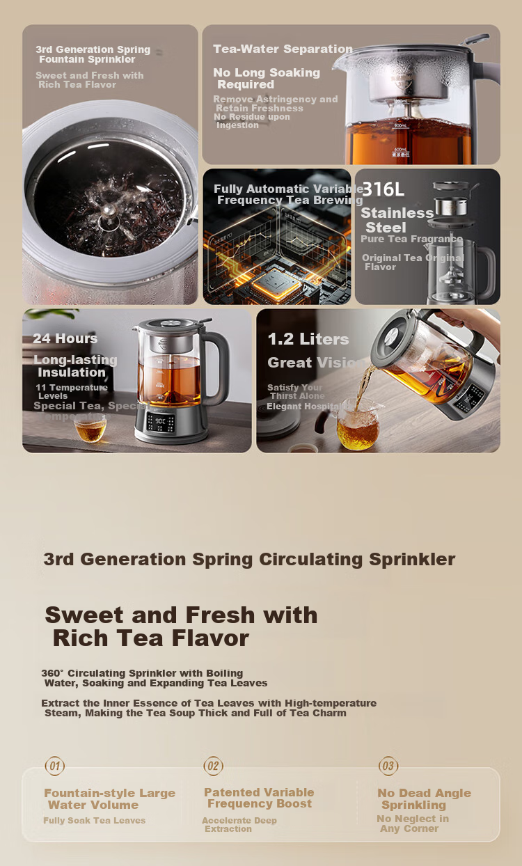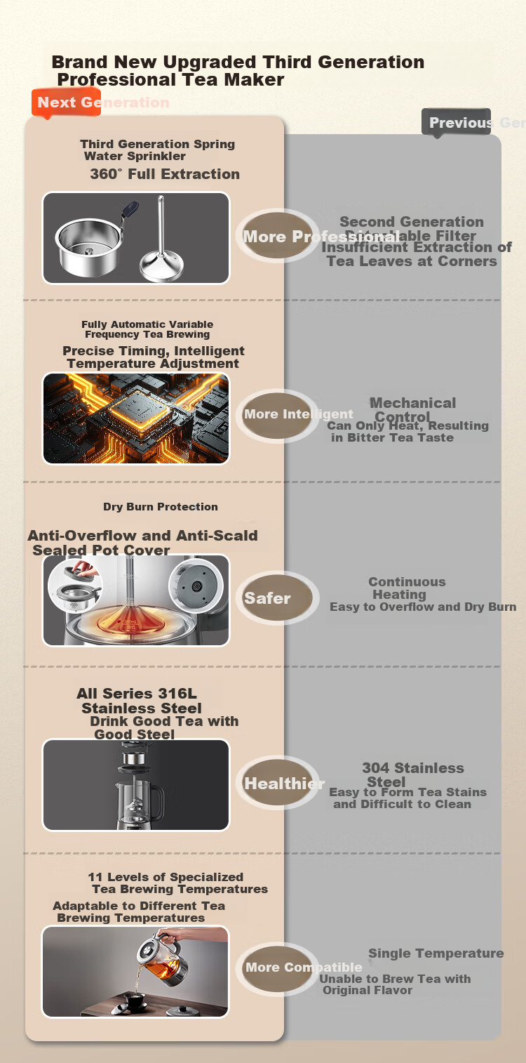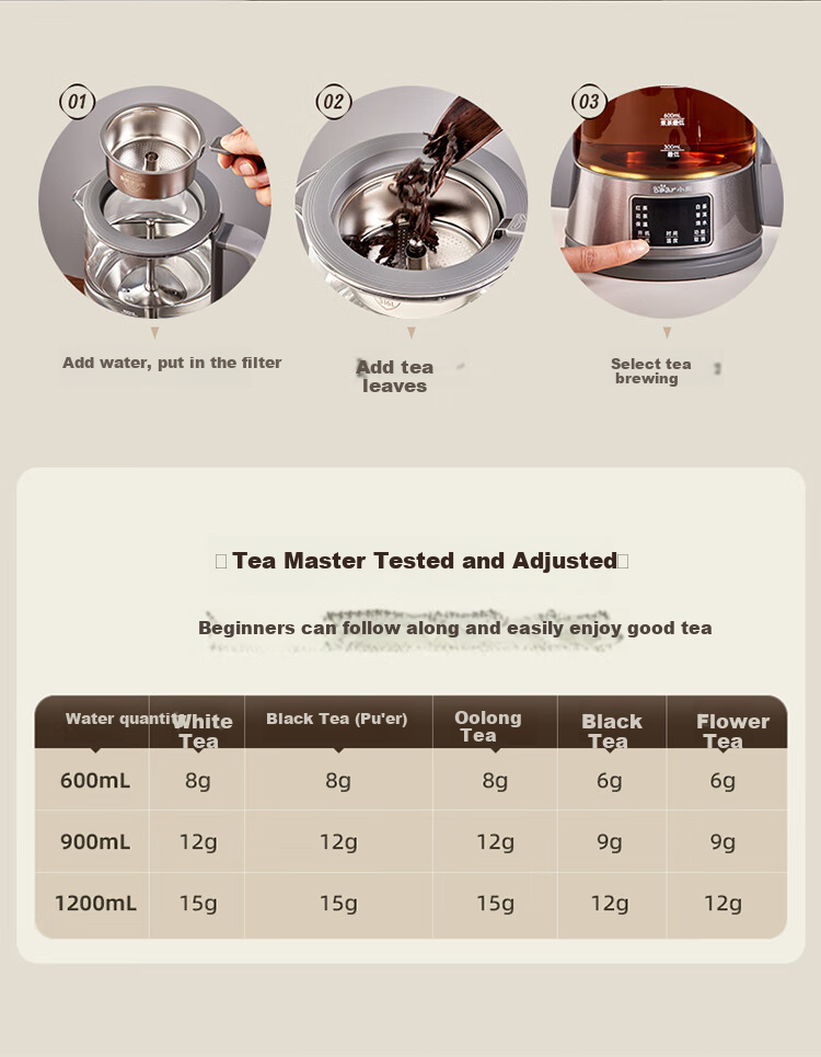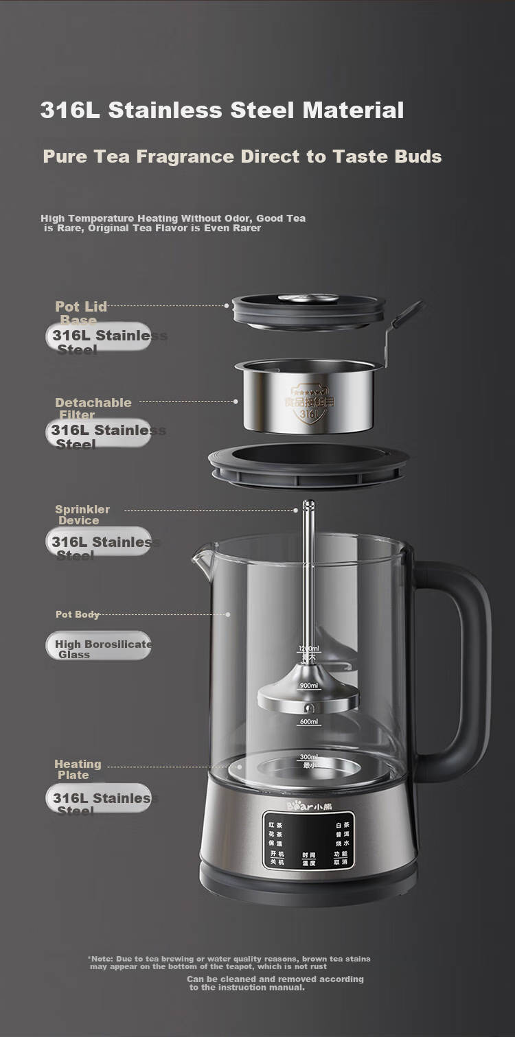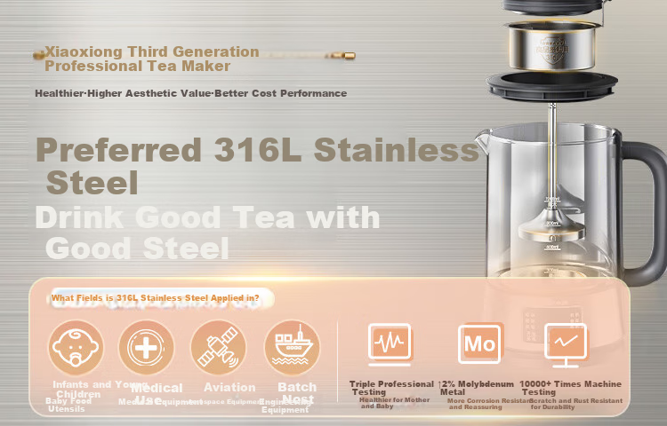 Utilizes 316L stainless steel for pure tea flavor and odorless high-temperature heating