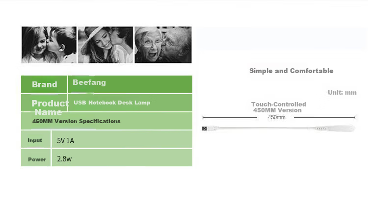 (Note: The above specifications are based on the provided information for the befon brand's USB Notebook Desk Lamp in the 450MM version.)