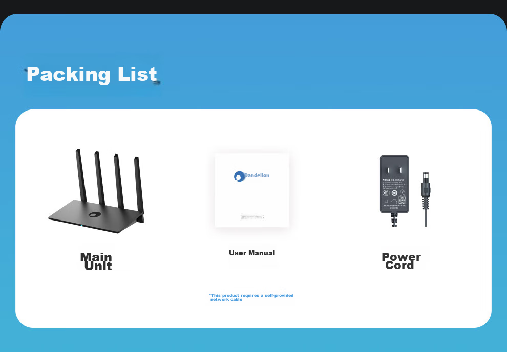 **Package Contents:** Pugongying 4G Router X4C, user manual, power cord. (*Note: Ethernet cable not included*)