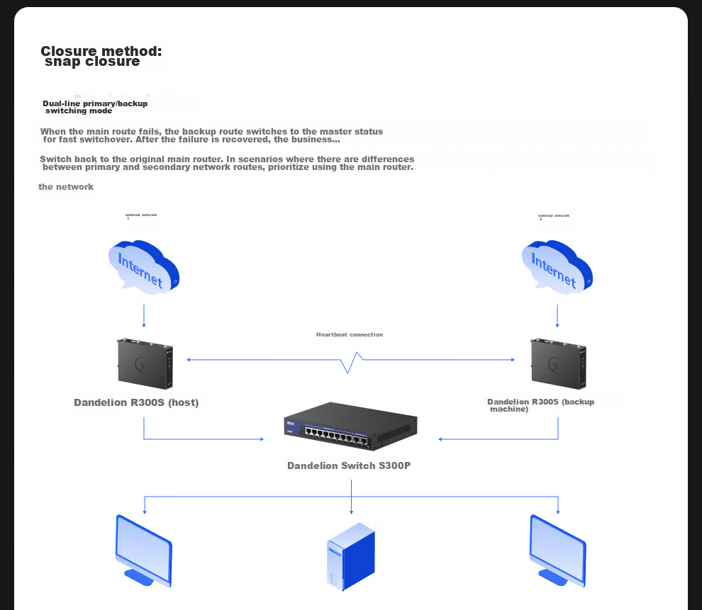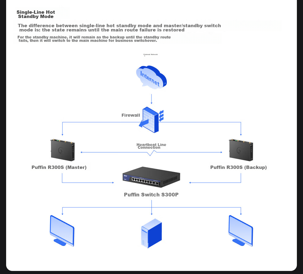 - Dual-machine hot backup with dual-line primary/secondary switch mode
