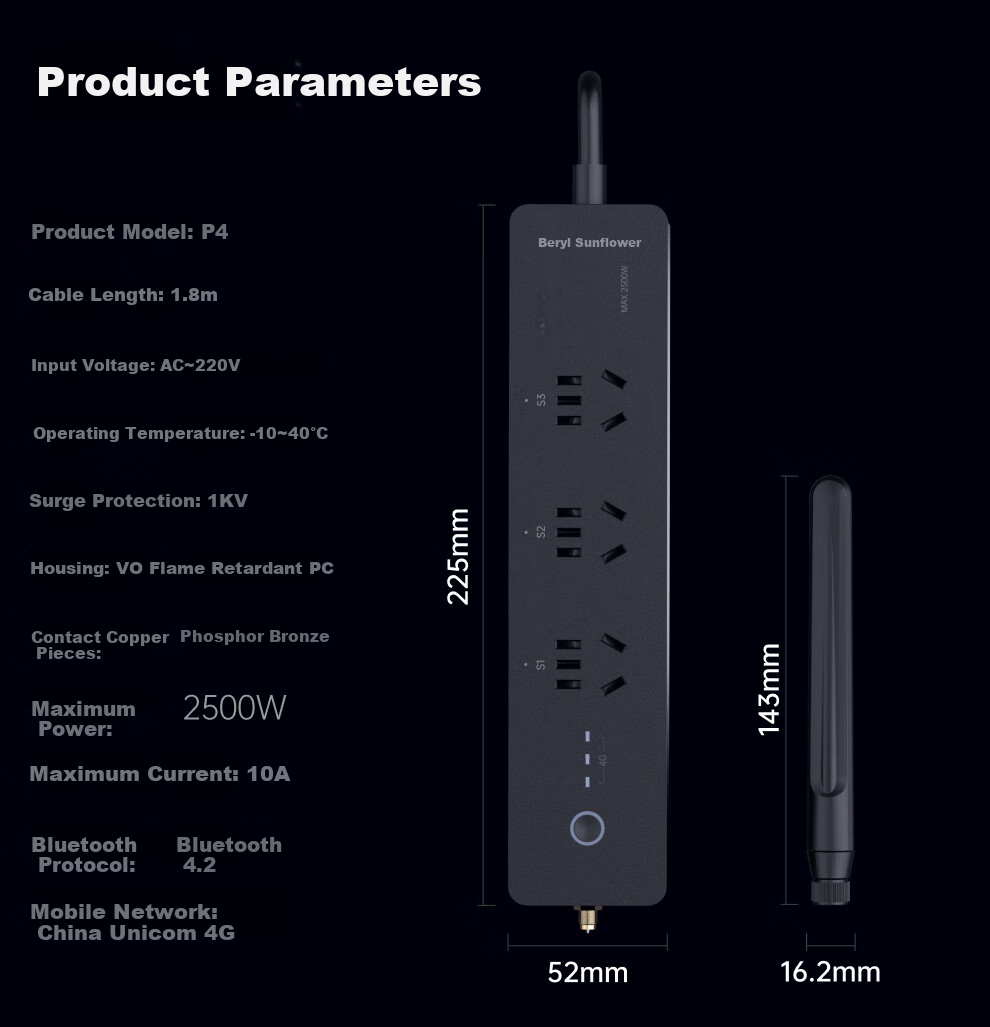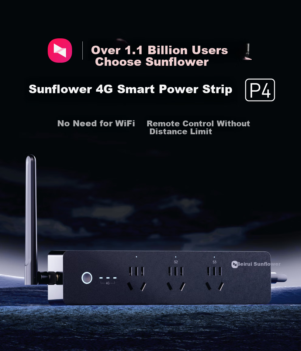 The Beirui Sunflower P4 4G Smart Power Strip does not require WiFi and operates on a stable 4G network, making it ideal for outdoor, suburban, and server room environments.