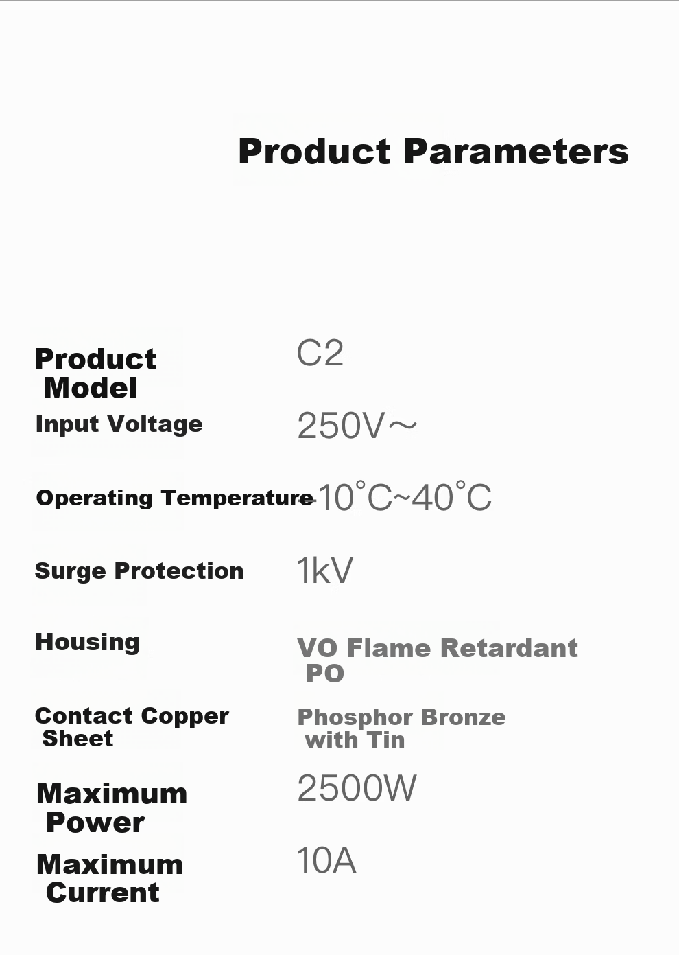 **Contact Copper Sheet:** Tin Phosphor Bronze