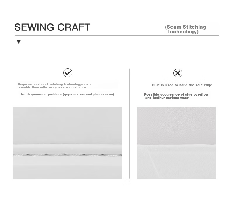 Sewing Craft: Exquisite stitching craft, more durable than adhesive bonding, with no glue separation issues. Some gaps in stitching may be present, and minor glue overflow and leather wear may occur on the outsole.
