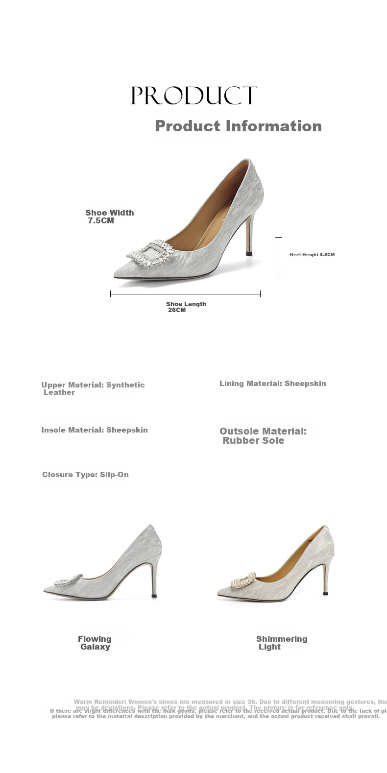 - Heel Height: 8.5cm