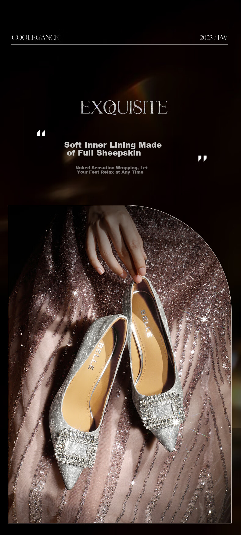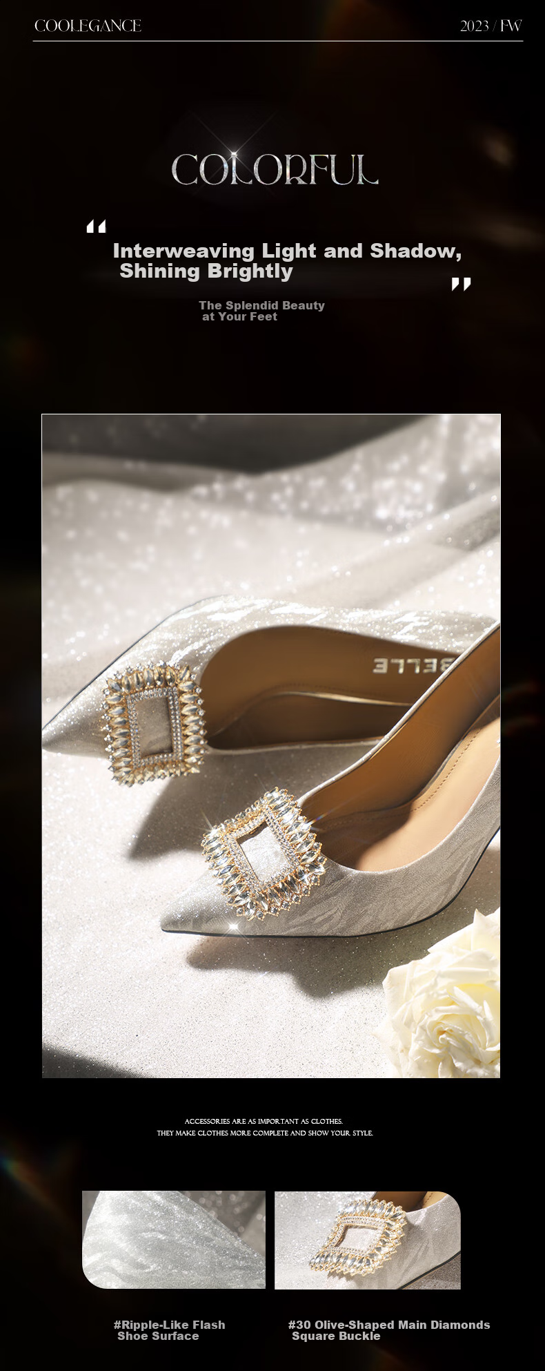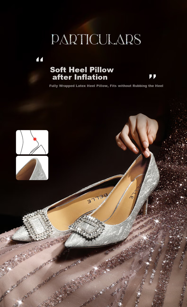 **Features:** Water wave fine flash shoe surface, 30 olive-shaped main diamond buckles.