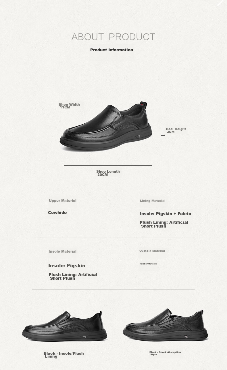 Features: Soft and comfortable, classic design suitable for all seasons, warm plush lining, shock-absorbing technology
