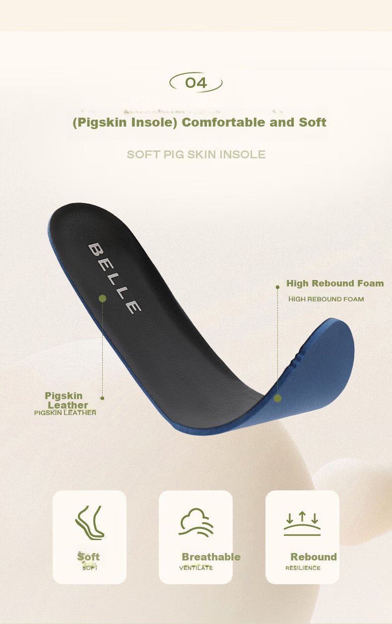 - Insole: Soft pigskin leather