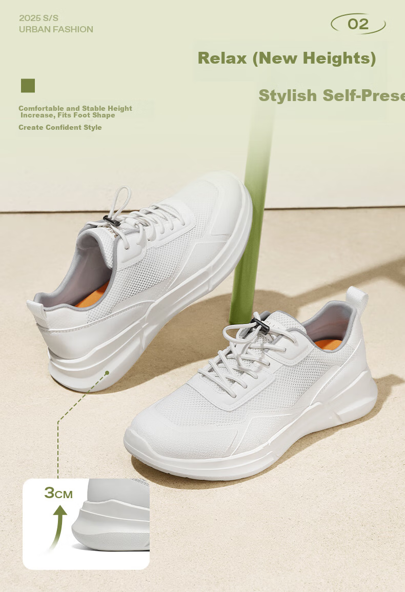 Design: Slip-on style with no laces, breathable and comfortable materials, air circulation inside and outside the shoe, 3cm height increase for a confident and stylish look