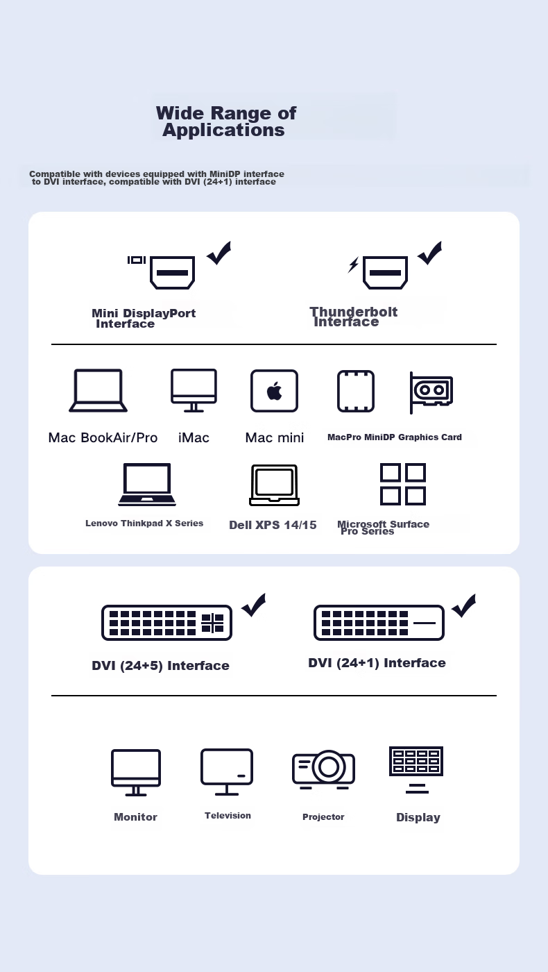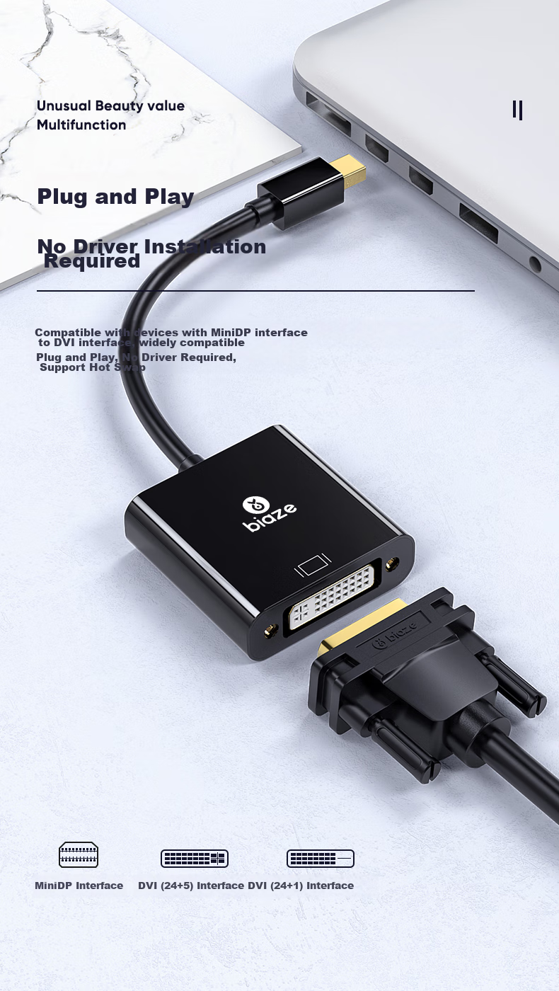 Wide compatibility with devices featuring MiniDP to DVI interface
