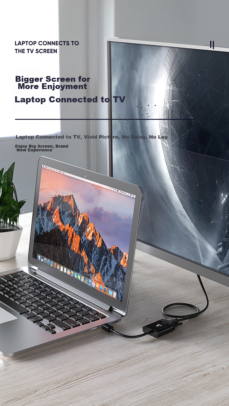 Ideal for connecting laptops to projectors, TVs, and monitors