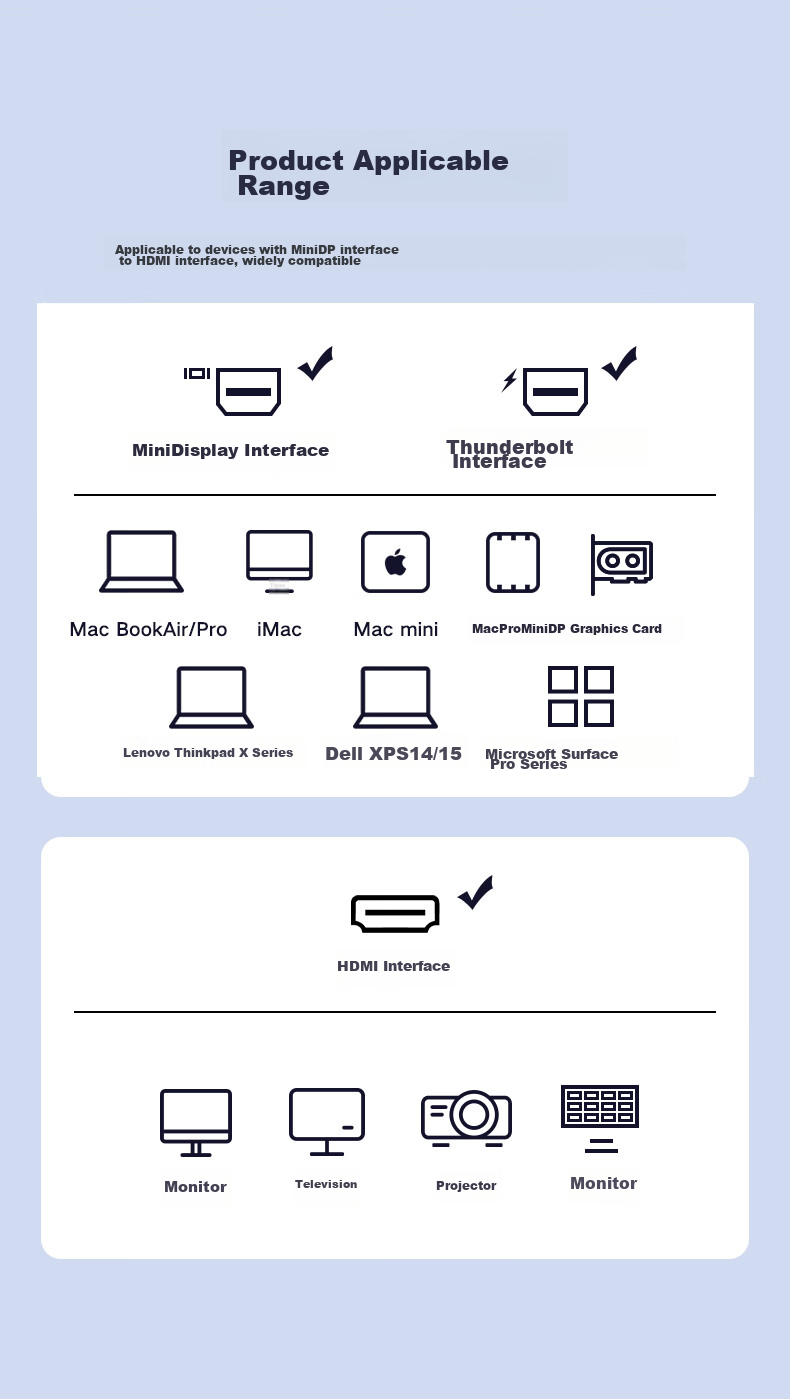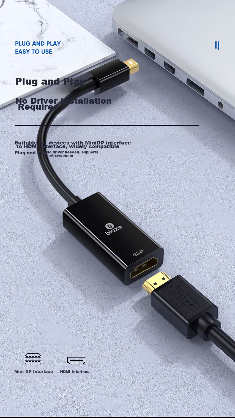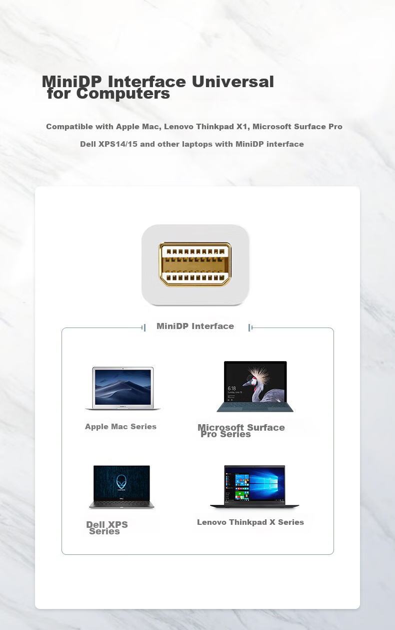 **Compatibility:** Widely compatible with devices featuring MiniDP to HDMI interface