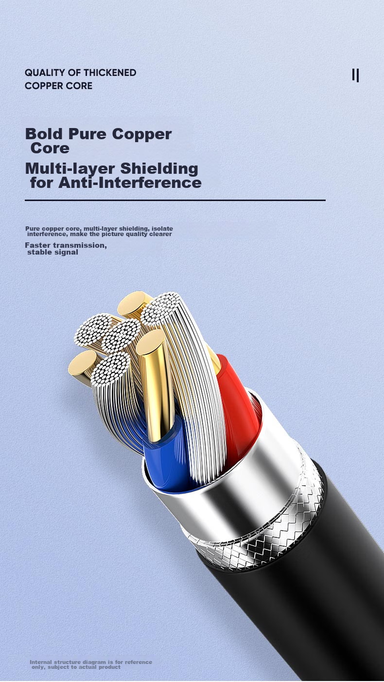 **Cable Material:** Thickened copper core with multiple shielding layers for clear and stable signal transmission