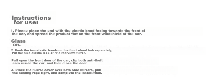 1. Place the product flat on the front windshield with the elastic band facing towards the front of the car.