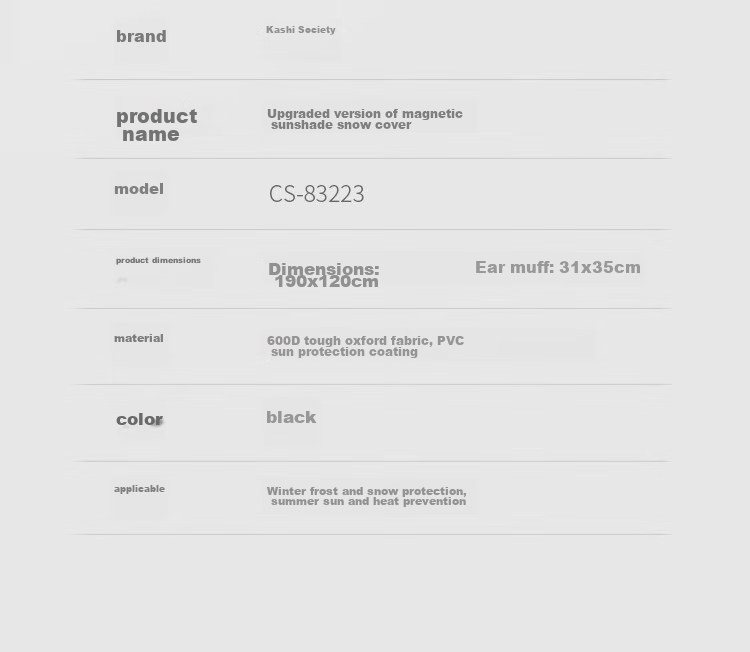 **Product Name:** Upgraded Magnetic Sunshade and Snow Cover