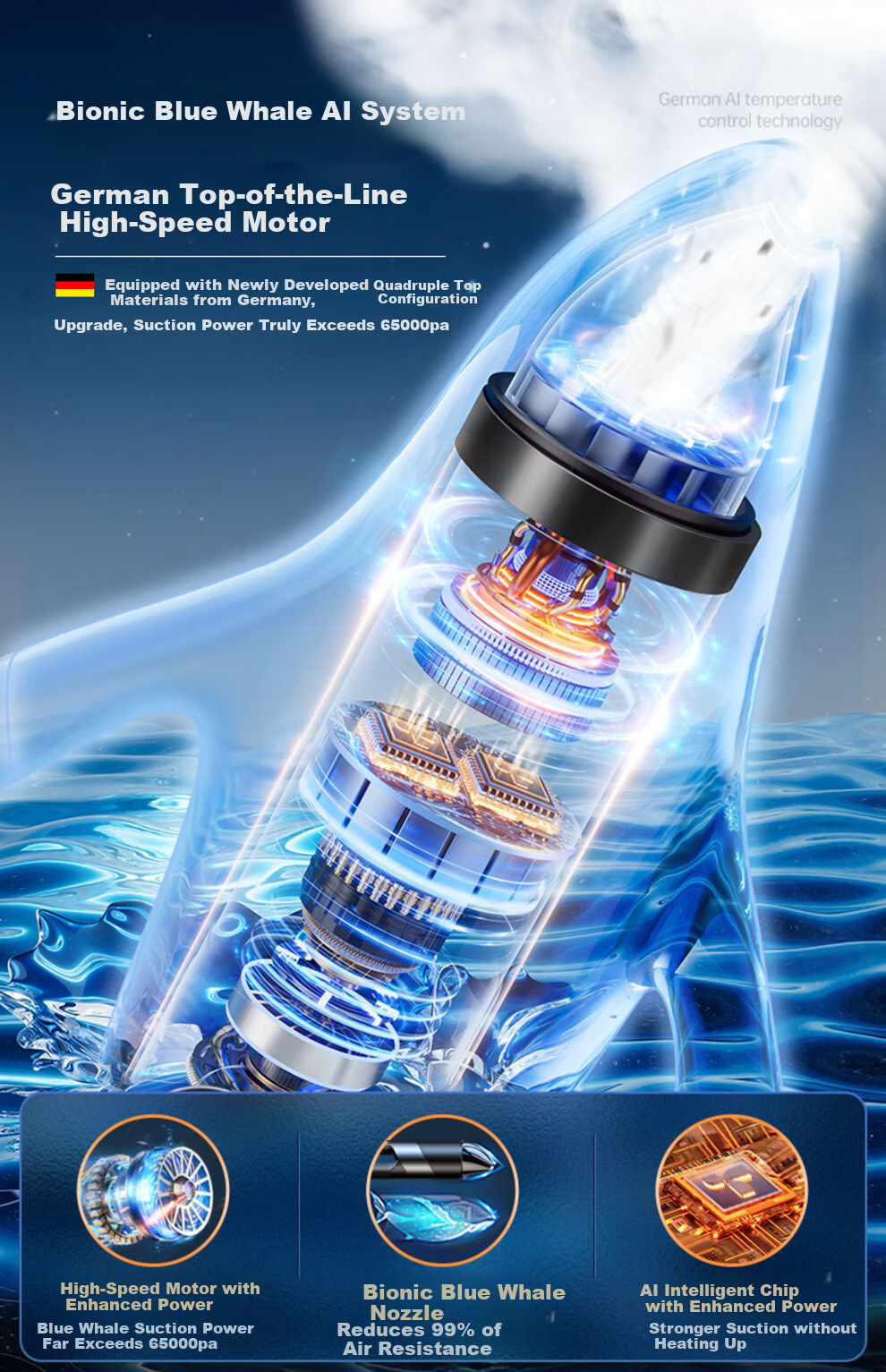 **Suction Power:** Exceeds 65000PA