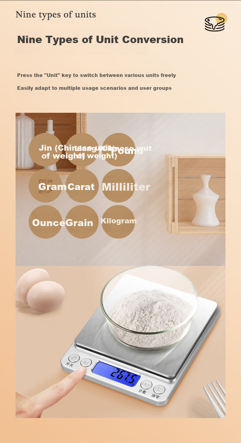 - Multi-purpose weighing for kitchen, baking, jewelry, etc.