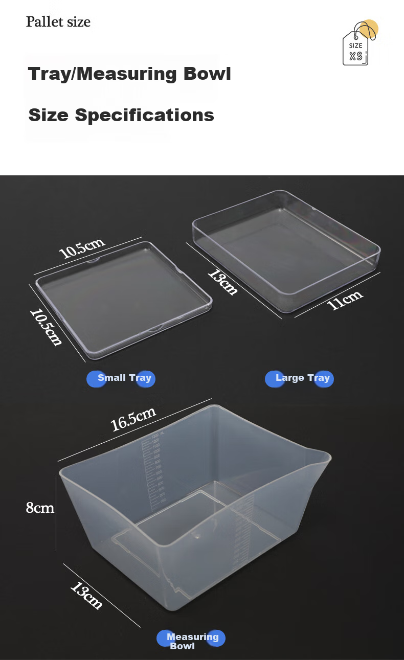 - Pallet size: Small tray - 10.5cm x 13cm x 10.5cm, Large tray - 16.5cm x 8cm x 13cm