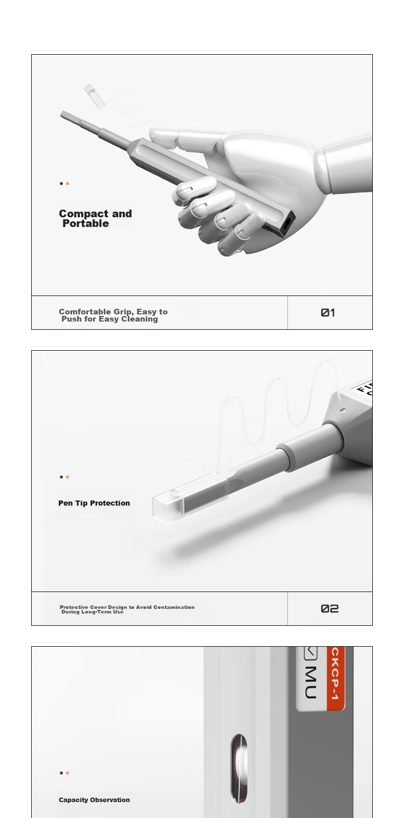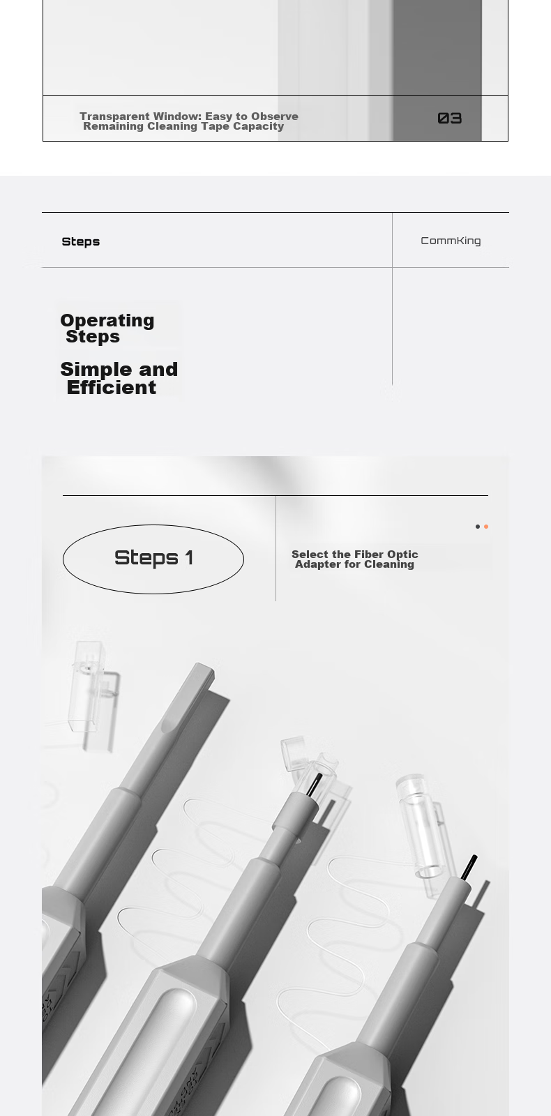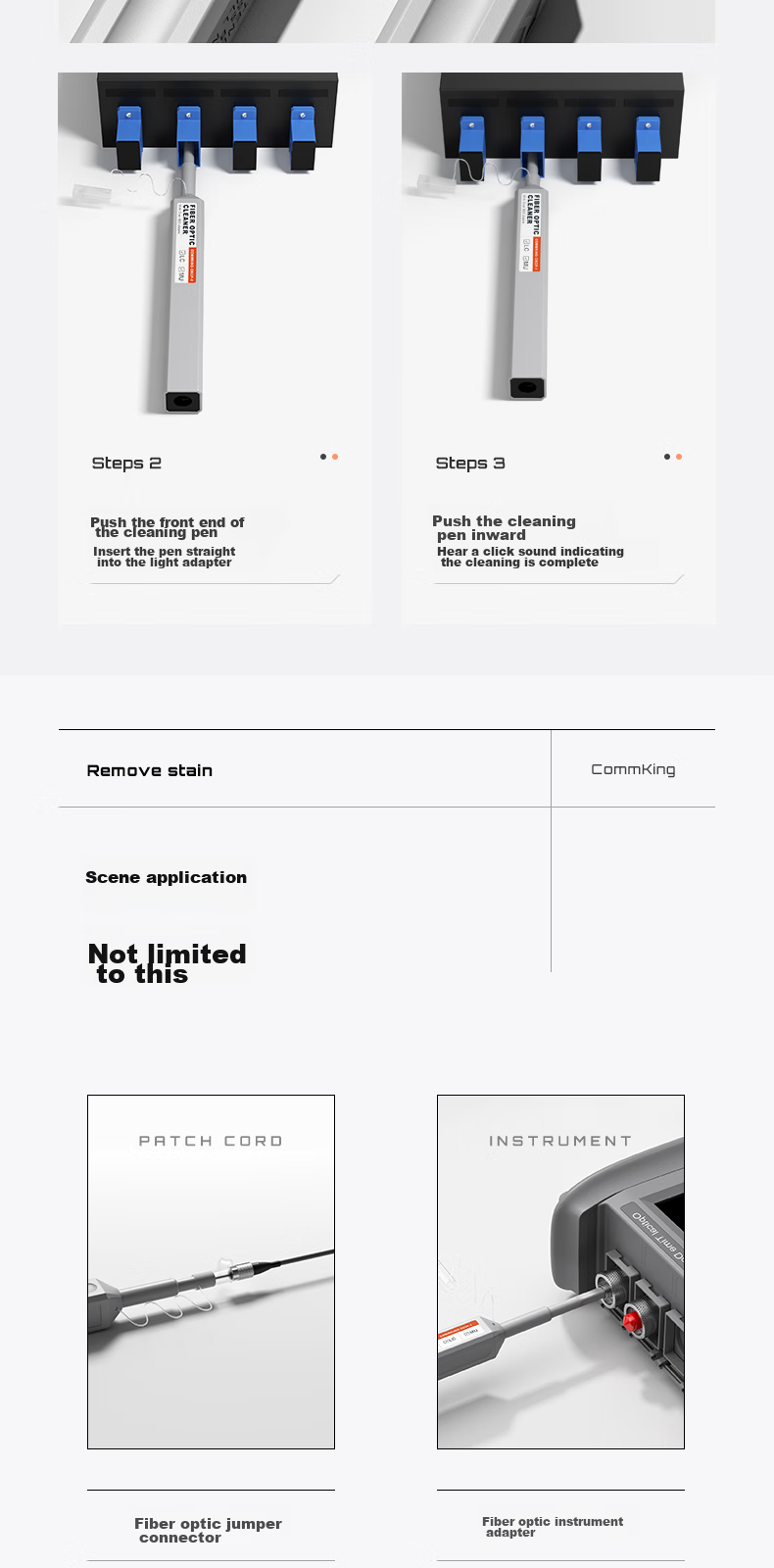 - Two models available: CKCP-1 for 1.25mm LC/MU connectors and adapters, CKCP-2 for 2.5mm FC/SC/ST/E2000 connectors and adapters